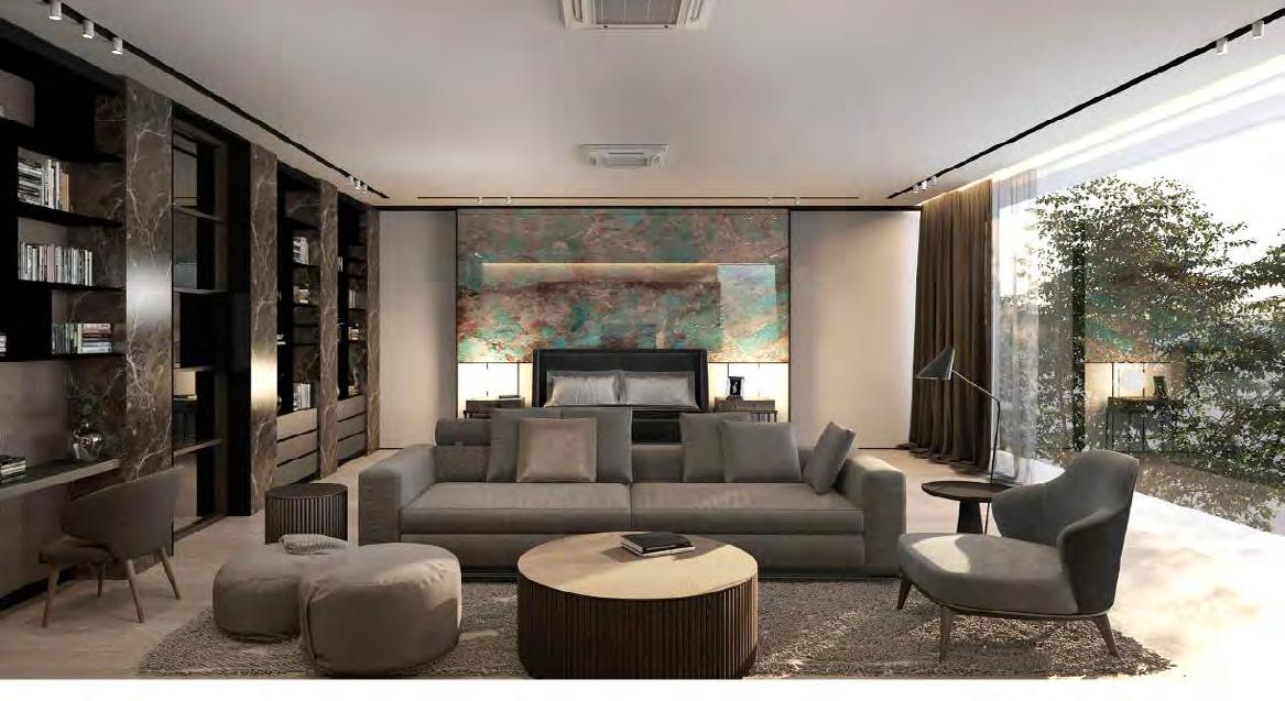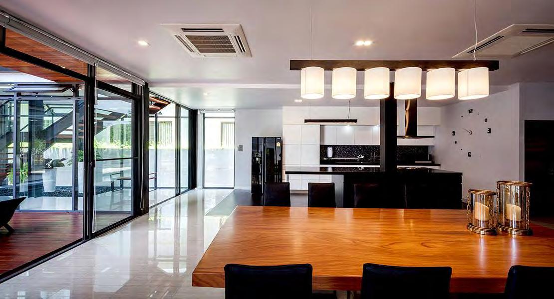 The first floor is an open planning de sign, with a large void in a living room that open view to the swimming pool and is connected to the retirement CEO couple’s room.