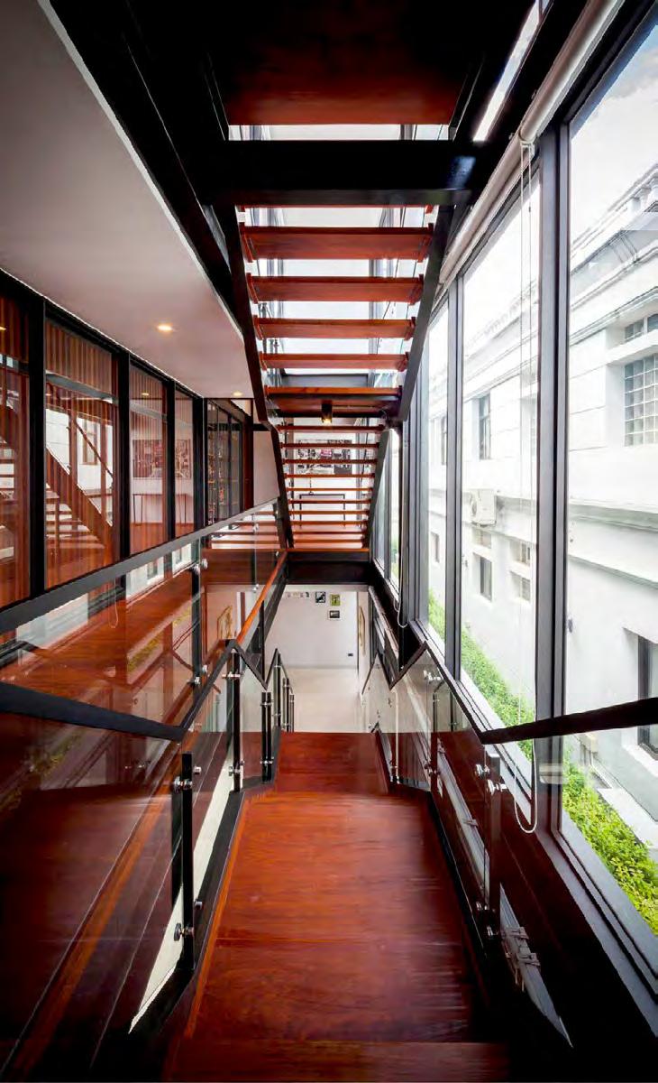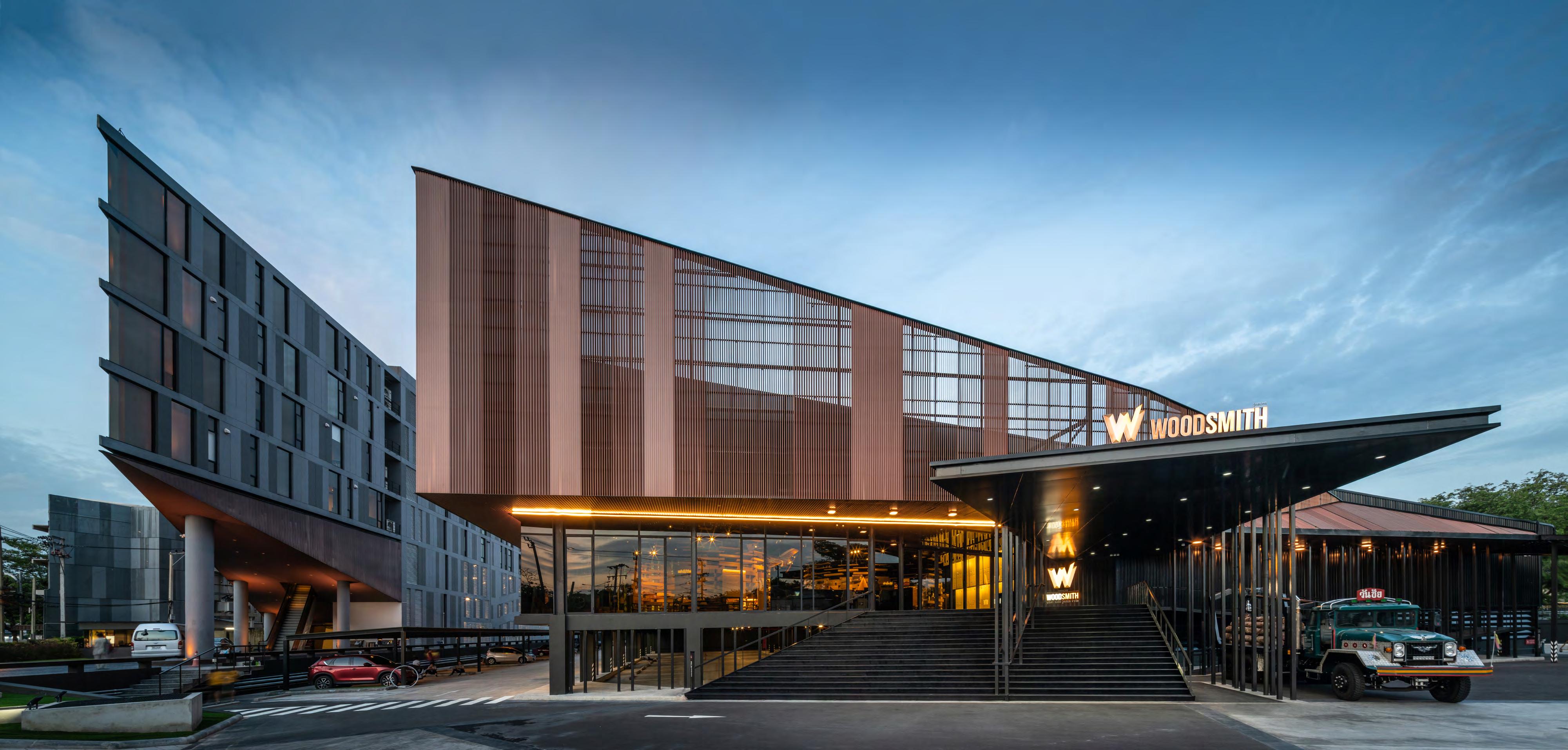 “WOODSMITH” the new artificial wood brand from Vanachai. Vanachai Headquarters(Left) / WOODSMITH museum(right) Main entry stair