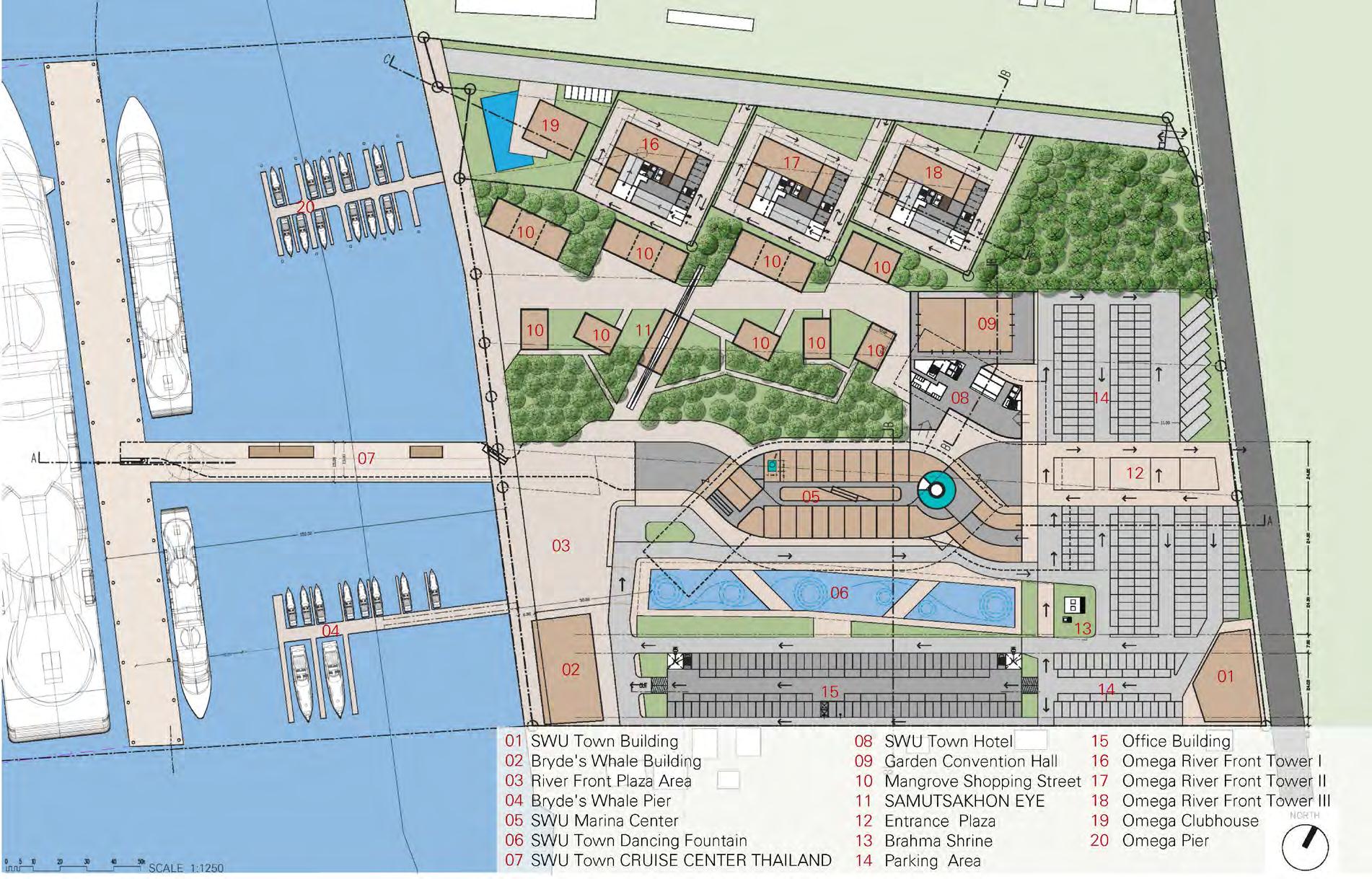 SWU town is the masterplanning of riverside development near Bangkok. It is aim to be a first of Bangkok port of the International cruise terminal that can cater largest Cruise ship in the world. Locating at the River mouth of Thai Bay, in total area of 81,600 sqm. SWU town is the good location for Cruise to stop by and give their traveller’s an attractive spot near Bangkok to stop by.