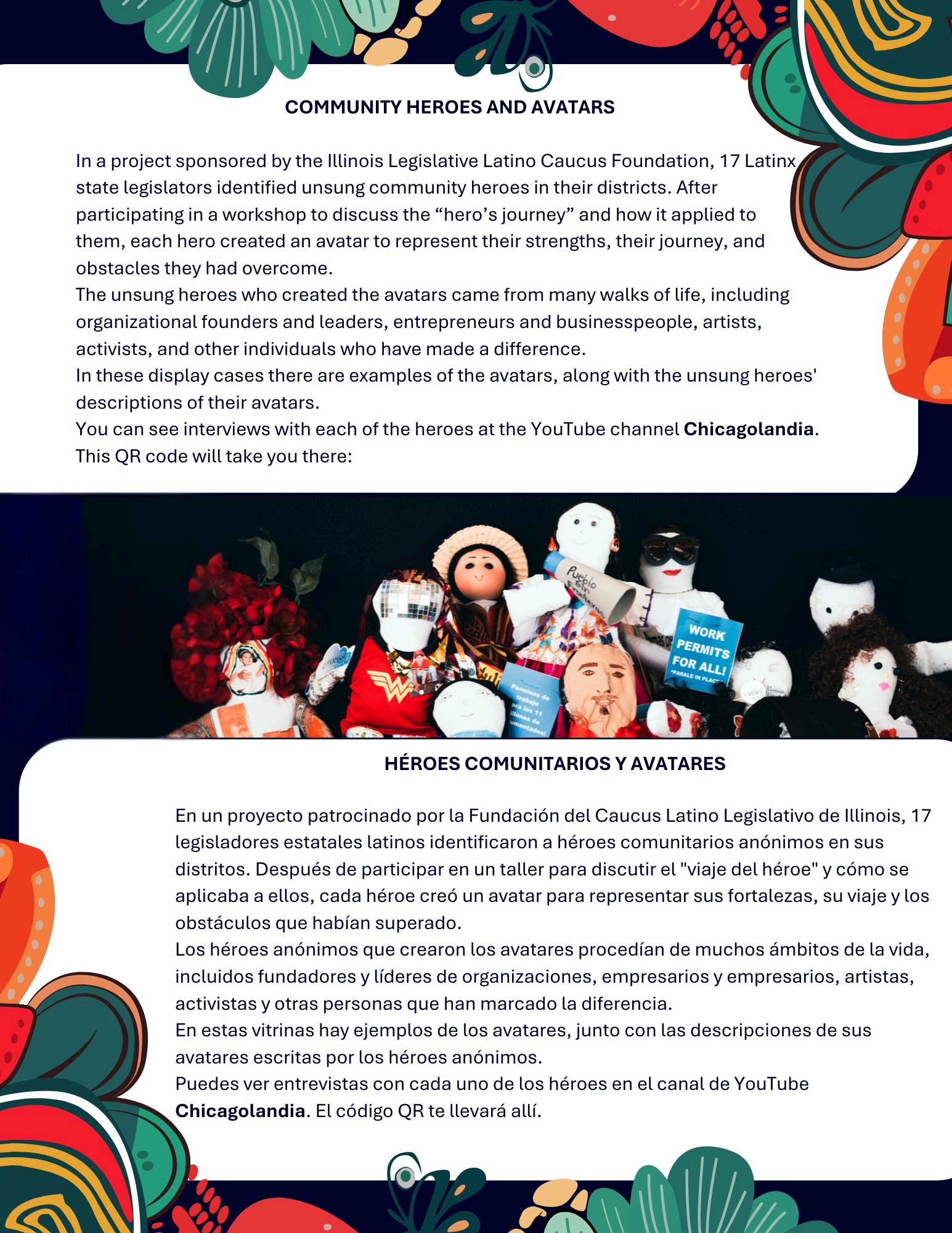 EnunproyectopatrocinadoporlaFundacióndelCaucusLatinoLegislativodeIllinois,17legisladores estataleslatinosidentificaronahéroescomunitariosanónimosensusdistritos.Despuésde participarenuntallerparadiscutirel"viajedelhéroe"ycómoseaplicabaaellos,cadahéroecreó unavatarpararepresentarsusfortalezas,suviajeylosobstáculosquehabiasuperado.