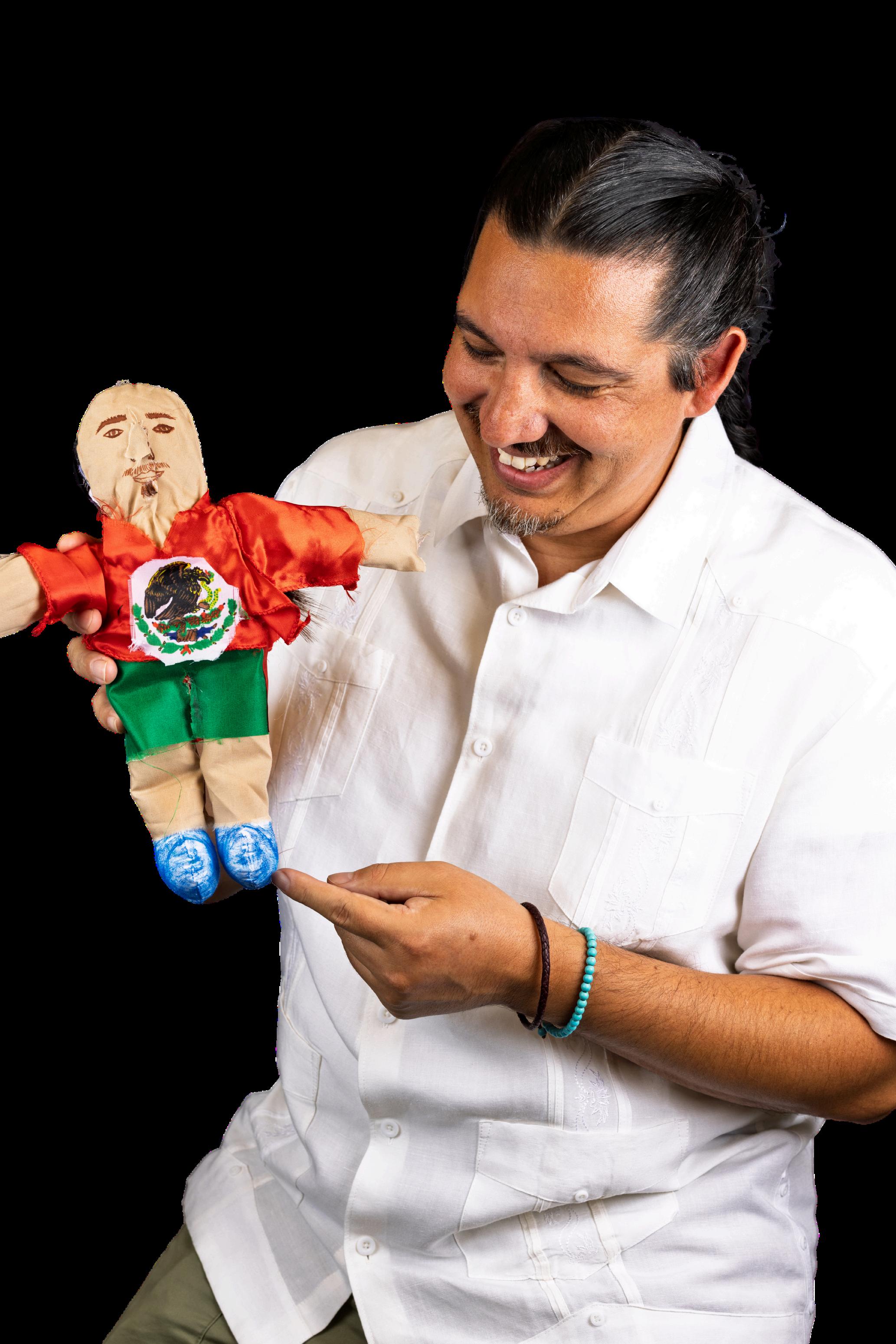 “MyavatarisclothedintheMexicanflag,symbolizingtheprideIhavein mycultureandhistory.Myskinisbrown,proudlyrepresentingmyskin color.Myhairislongandintwotrenzas(braids)humblydemonstratingmy indigenousancestry.I'mwearingMichaelJordansneakerssymbolizingmy prideforHip-Hop,LittleVillage(mycommunity),andthemulti-cultural experienceslivinginChicago.Thebackofmyshirthasthenumber22, representingthecitywardIliveinandtheinitialsIPO,fortheIndependent PoliticalOrganizationIamapartof.The22ndwardIPOisaneighborhood organizationthatwasfoundedbymyparentsandpoliticalactivists leadinguptothe1983cityelectionstosupportHaroldWashingtonformer mayorandRudyLozanoSr.foralderman.”