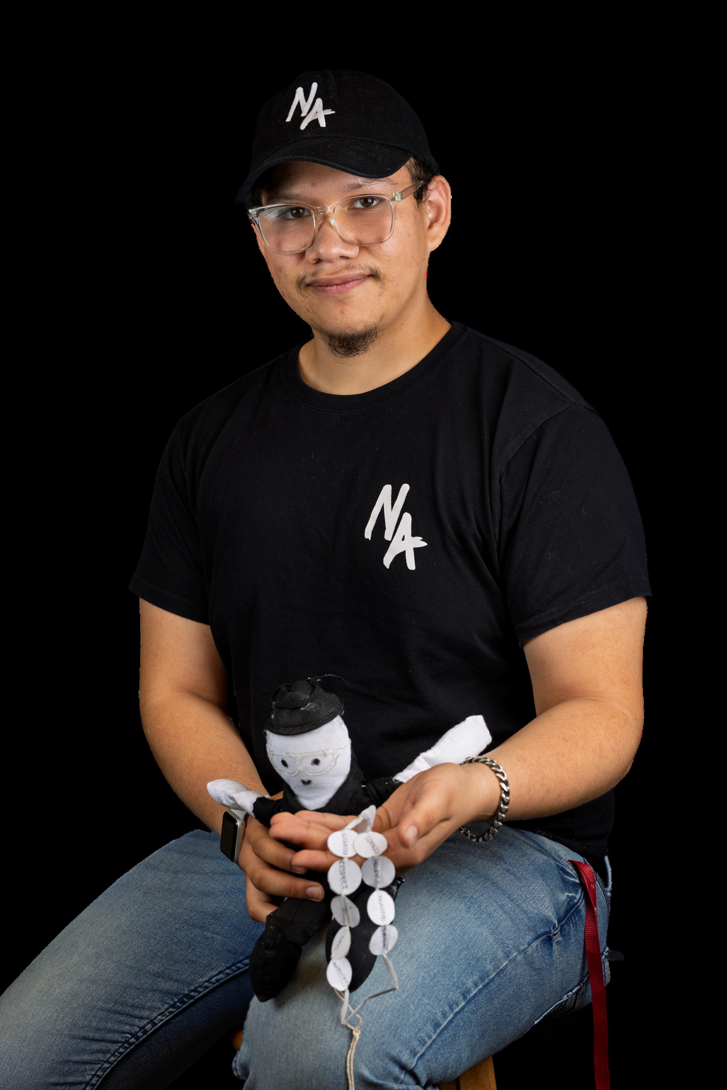 “Guiadopormiespírituaventurerodeninjayunpocodela esenciadeRobinHood,esteesmiavatarguerrero. Cubiertoensutotalidaddenegro,llevandounamochila hechaamano,conunamascarillaKN95,miavatar tieneunakatanadepapelblanco,listaparala aventuraylasbatallasporlajusticiaquese avecinan.Bajosutúnicaoscura,yaceungran corazónquerepresentamiamorybondadque permanecenenelcentrodetodoloque hago.Dentrodesumochila-mascarillahay palabrasquecaptanmisvaloresy fortalezasfundamentales-principios quesiemprellevoconmigo.Estepequeño avatarsimbolizamiviaje:valiente, deliberado,ybasadoenlacompasión”.