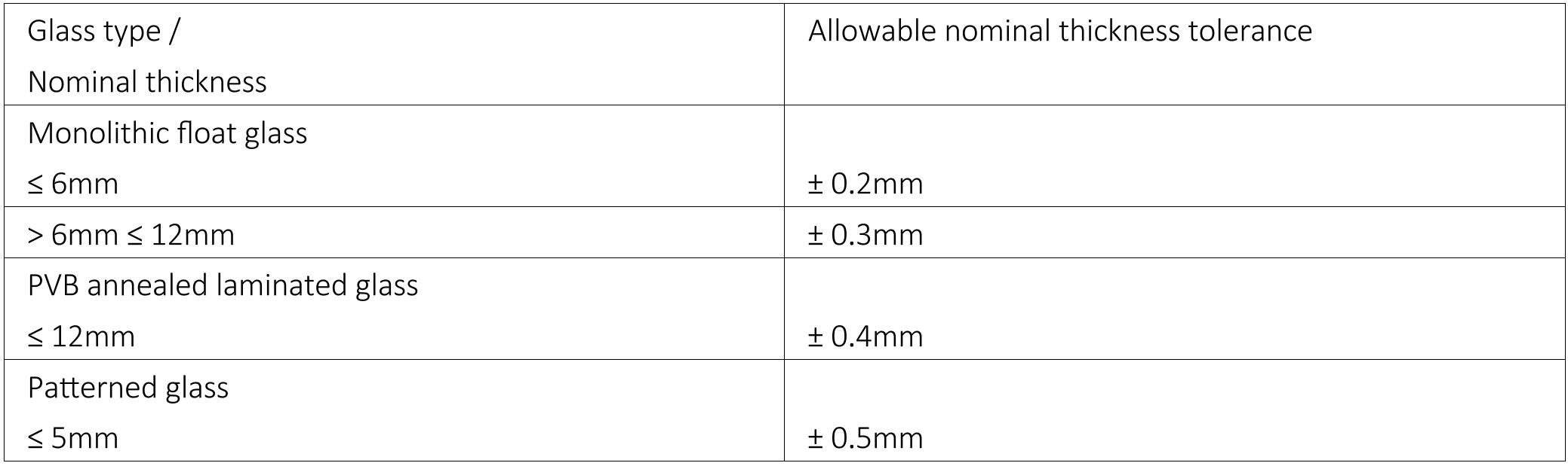 Table 6 – Allowable thickness tolerances for an individual glass pane .