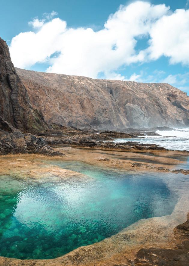 Hier bilden sich bei Ebbe kleine natürliche Pools, in denen Sie sich im einladenden blaugrünen Wasser dieses kleinen Schatzes von Porto Santo entspannen können.