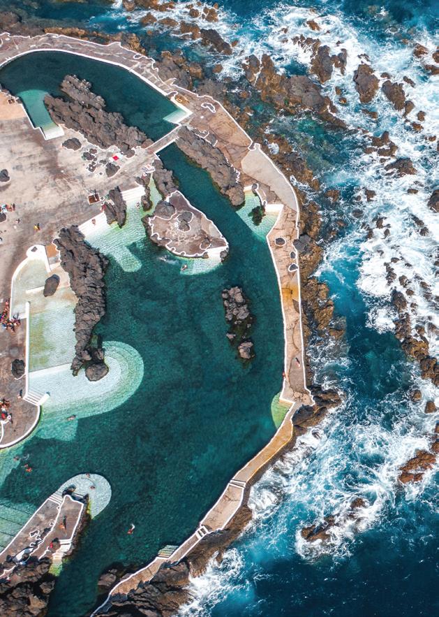 Die natürlichen Pools von Porto Moniz gehören zu den beliebtesten Attraktionen der Insel Madeira und befinden sich an ihrer Nordküste. Die grüne Landschaft der Berge und das Meerwasser, das sich zyklisch in den vulkanischen Felsen erneuert, einen die Elemente Erde und Wasser in einer geradezu idyllischen Vollkommenheit.