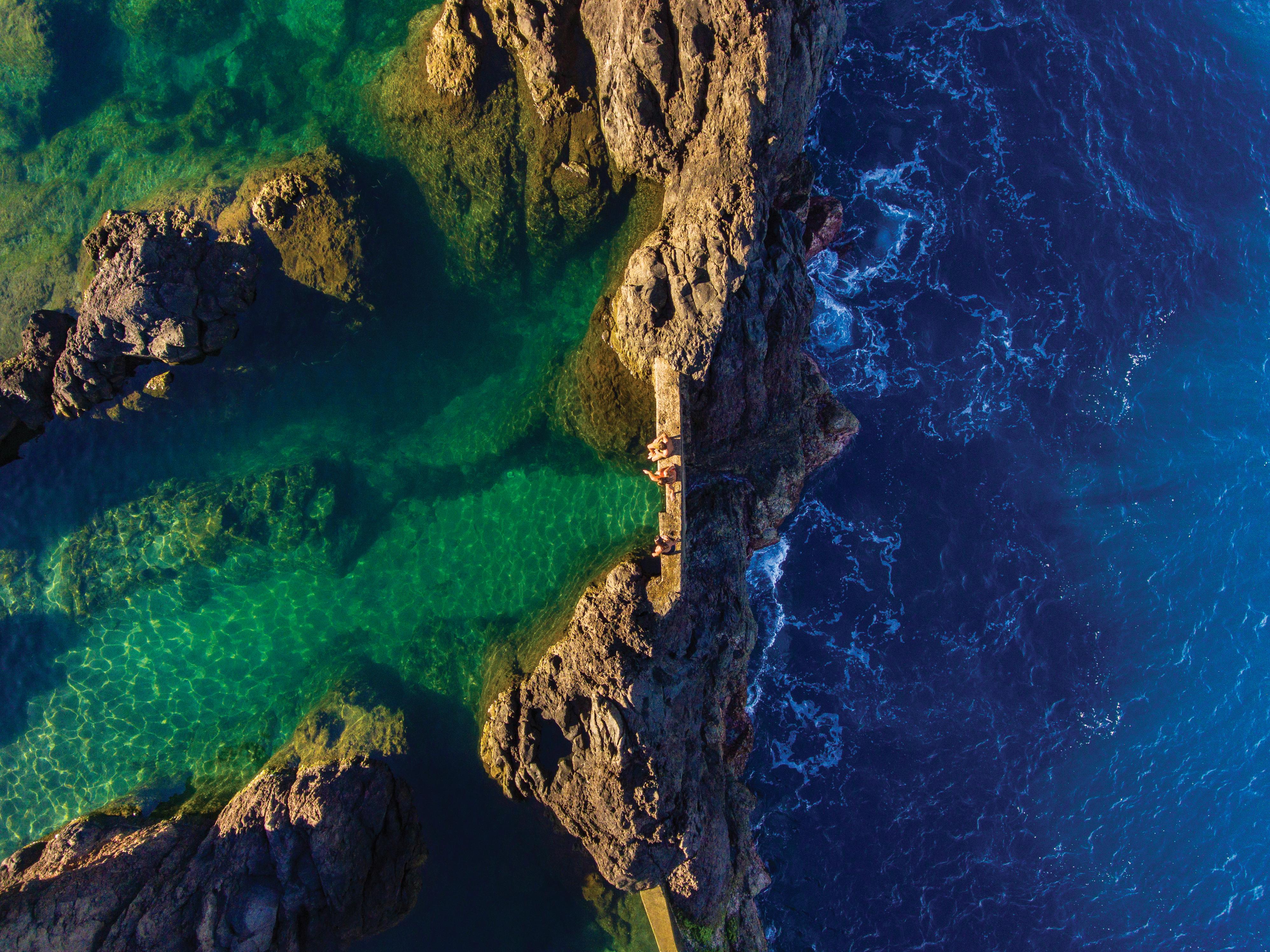 As piscinas naturais do Porto Moniz estão entre as mais populares atrações da ilha da Madeira e situam-se na costa norte. A paisagem verdejante das montanhas e a água do mar, renovando-se ciclicamente nas rochas vulcânicas, conjugam os elementos terra e água numa idílica perfeição.