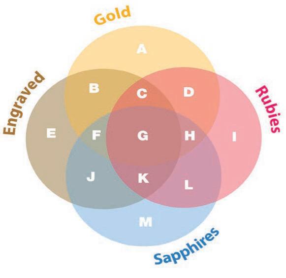 Can you work out which areas of this diagram represent gold bracelets that have been engraved and set with sapphires but not rubies, and sapphire and ruby bracelets that aren’t gold and have not been engraved?
