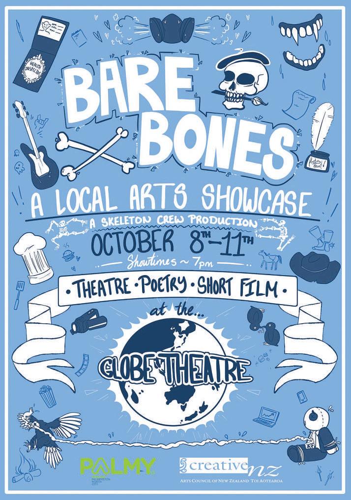 Skeleton Crew Presents: Bare Bones - A Local Arts Showcase – 3/4, short plays, devised theatre, slam poetry & short film, 7pm, Globe Theatre, 312 Main St Info g obetheatre co nz 06 351 4409