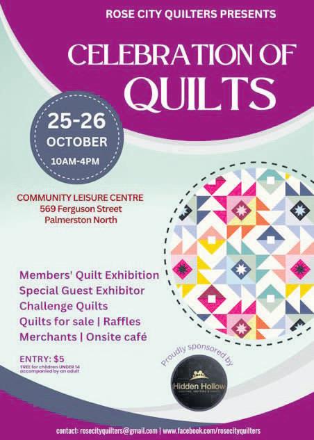 Celebration of Quilts – Rose City Quilters quilt fest, 1/2, 10am -4pm Community Leisure Centre, 569 Ferguson St Info facebook com/rosecityquilters/