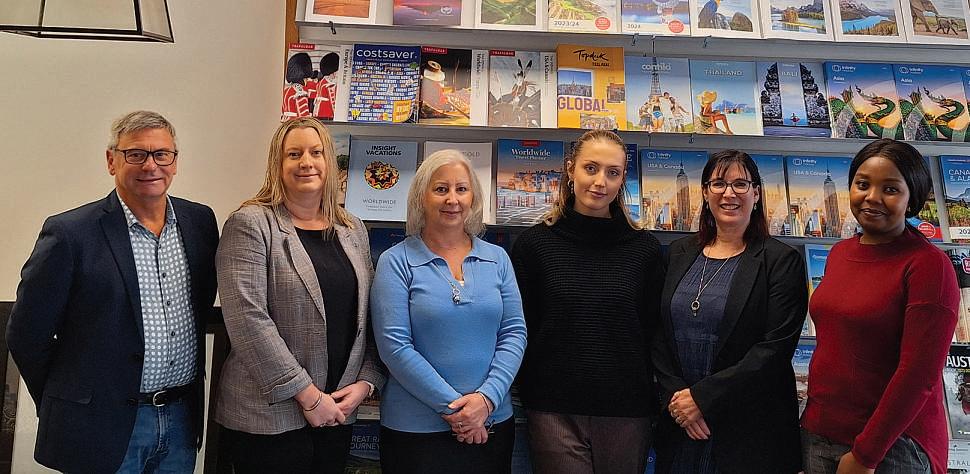 ThefriendlyteamatElliottWorldTravellersarefromleft GrahamElliott,KylieThompson,KirstyEllis,EmilyWalker,LuisaWalsh,LindaMashiri