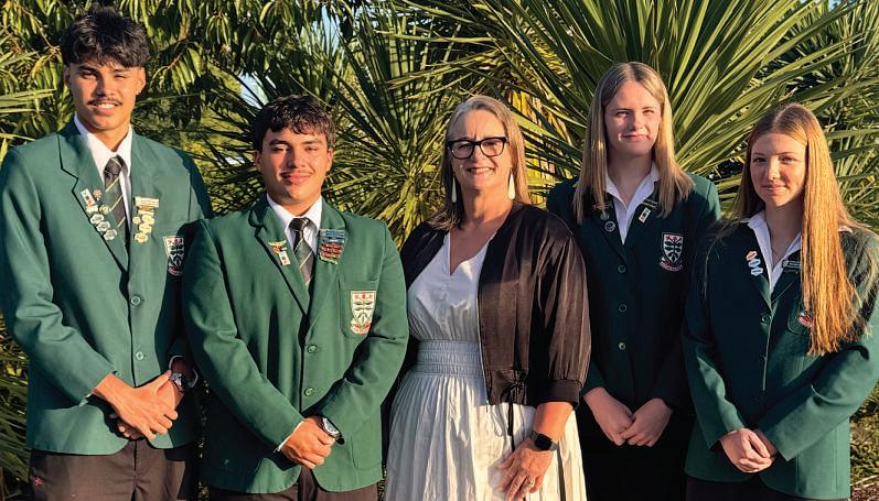 Lefttoright:JDMananes(Community Leader),MaxMooney(AcademicLeader), AliceJamieson(CommunityLeader),Aaron Bensen(SportsLeader),TaylahAnnand (CulturalLeader),LukeMadsen(Cultural Leader),PaigeFranklin(AcademicLeader), LeilaHeremaia(SportsLeader), TheStudentLeadershipteamisresponsible forleadingtheirpeersintheirparticular portfoliosthroughouttheyear.Aswellas beingtheleadingrolemodelswithinthe schooltheStudentLeadershipteamhave responsibilitiesfortheCultural,Academic, CommunityandSportingareasofthe school,leadingandrepresentingthestudent bodythroughouttheyear.