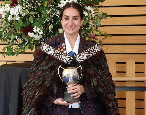 GretaMinehan washonouredwiththeDuxaward for2025.CentralHawkesBay CollegeiswhereGretadiscovered herpassionforbusiness,which ledtoanawardwinningYES projectwithtwoofherfriends. GretaintendstostudyLawat CanterburyUniversityin2026.