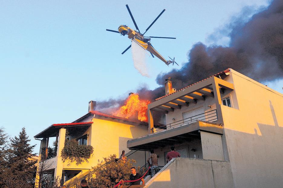 Firefighting teams respond to a forest fire that broke out in Krioneri, near Athens, last month; David (right), a Kiwi travelling through Europe, said his group managed to visit the Acropolis the day before the ruins were partially shut Photos /