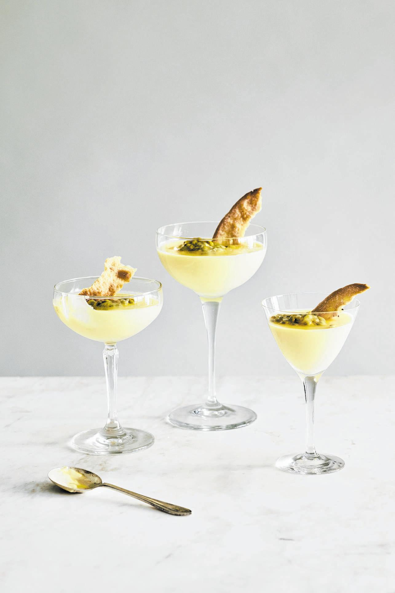 To serve we topped our possets with the pulp of 3 passionfruit and a few shards of Spanish olive oil tortas