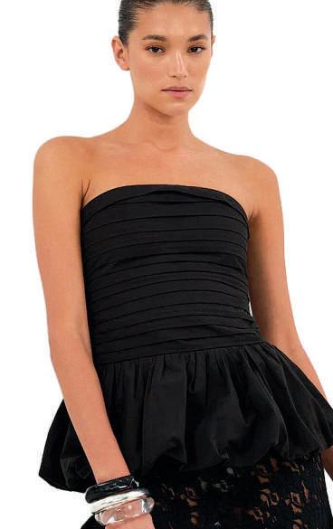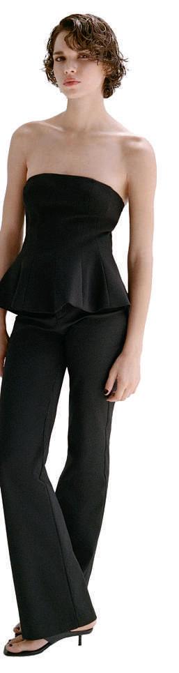 Like Molly try pairing a strapless peplum top with sleek black trousers and pumps for an effortless nighttime look For day-to-day wear opt for a cotton peplum T-shirt with jeans and runners