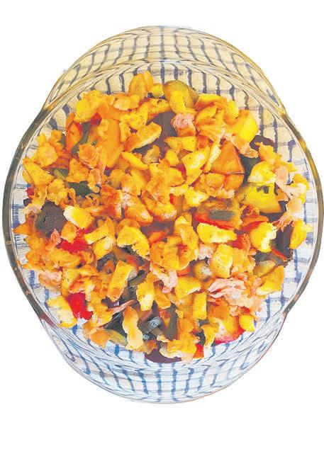 Chunky chop all the vegetables and add the herbs (ļ¬nely cut)