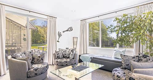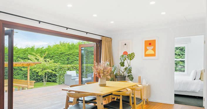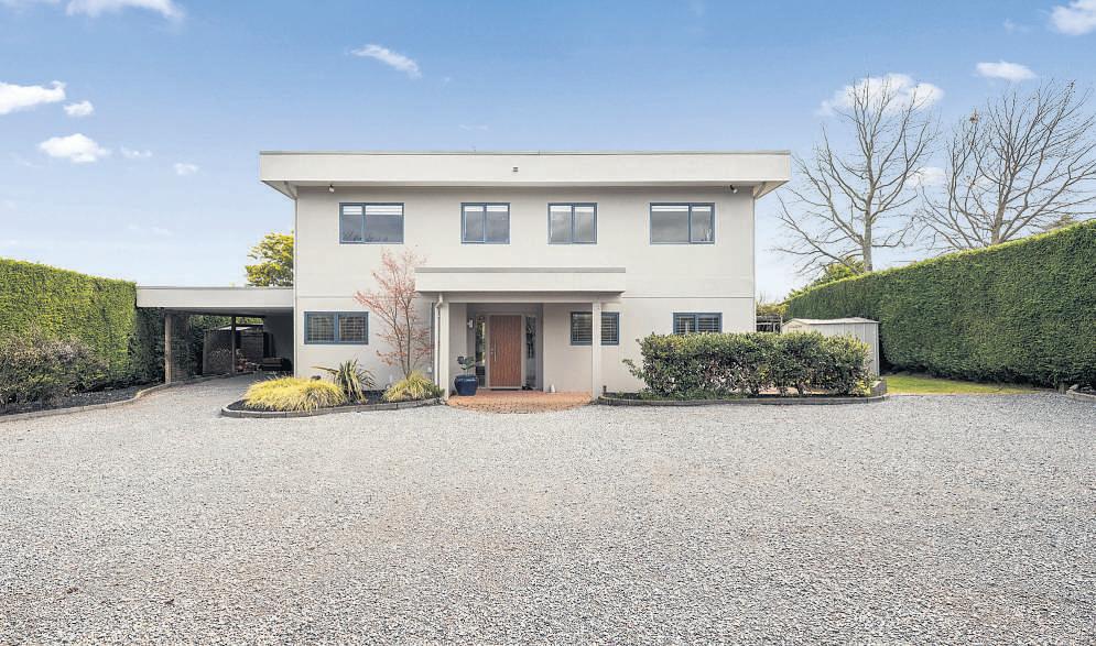 Along,treelineddrivewaysetsthesceneforarrival,winding towardestablishedparklikegroundswherebirdsongfillsthe airandtranquillityreigns.Inside,agrandlightfilledfoyer opensontorecycledRimuflooringthatflowseffortlessly throughtoopenplanliving.