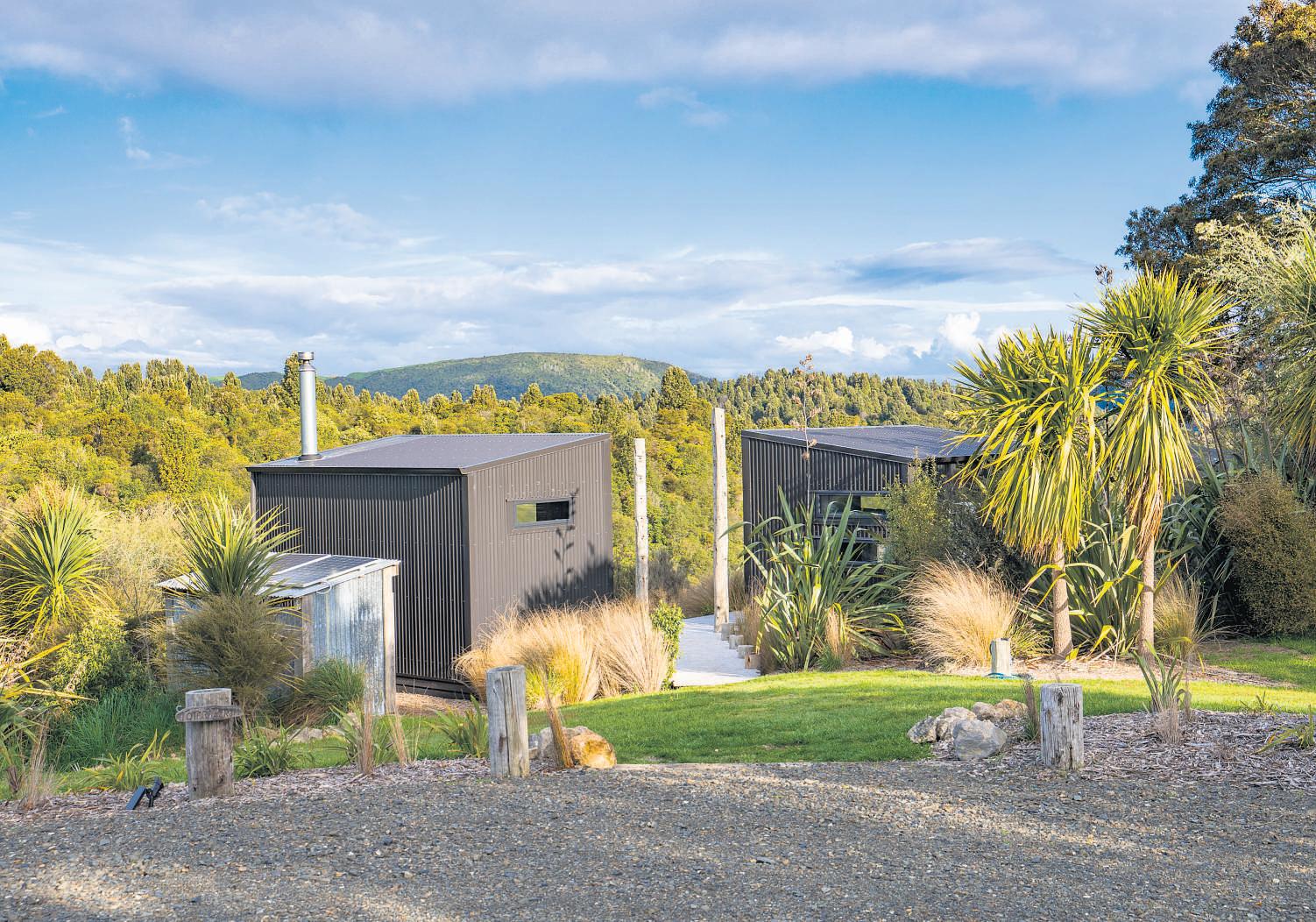 Stepinsidetoastrikingblackandwhiteinteriorthat framesthescenerylikeartwork.Texturalrockwallsatthe coveredentryandboldmonochrometilingadddepthto theneutralpalette,whileexpansiveglazingensuresthe viewsremainthehero.Heatedtiledfloors,threeheat pumps,andafloortoceilingrockwallsurroundsthewood burnerintheloungedeliveringyearroundcomfort.