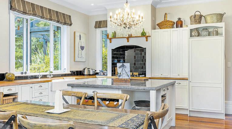 Withasoaring3metrestudandEnglishinspiredkitchen featuringhandmadetimberbenchtops,doublebutler’ssinks, polishedconcreteislandwithbuiltinwineracksandsliding basketsandexquisitelighting,thisisahomethatdelights boththeentertainerandthefamilyhost.