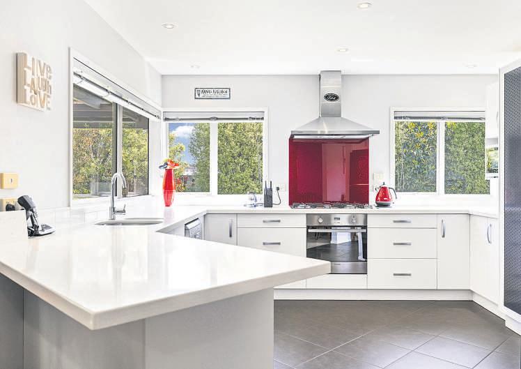 Outside,easy-care,fullyfencedgrounds,internal-access garage,extraoff-streetparking,andaversatileroomoff thegarage.Walktolake,townandcafes.ZonedHilltop School.