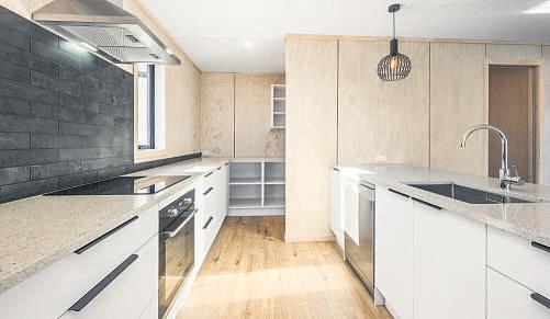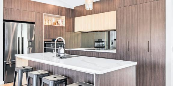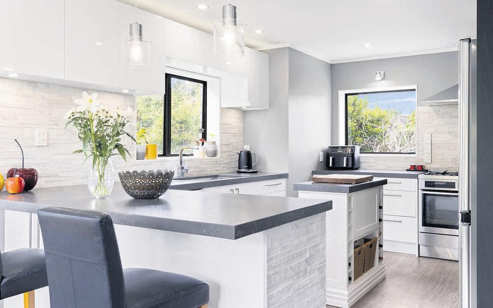 Upstairs,light-filledopen-planlivingcaptureslakeand mountainviewsandopenstoagenerousdeck,idealfor entertaining.Themodernkitchenoffersexcellentbench spaceandfunctionality.