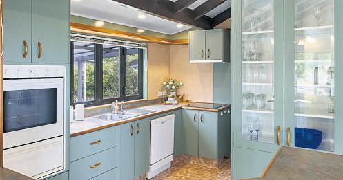 Thekitchenwithitstimberbenchtops,hugescullery,twinbutler’ssinks,and outlookacrossthegardenstothelake—feelsdesignedforlonglunchesthat stretchintoevening.