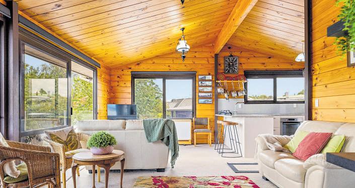 There’samomenteachmorningonBlueRidgeDrivewhenthesuncrests MountTauharaandspillsgoldenlightacrossLakeTaupo.Fromalmostevery roominthislodge-styleretreat,thatmomentisyourstokeep.