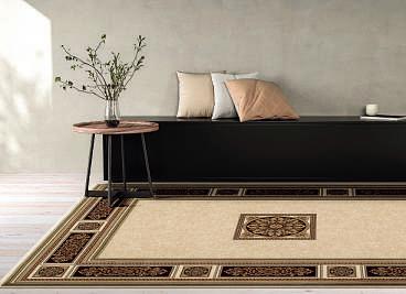 a loose black cotton T-shirt topped with a tan-coloured cropped jacket and flared black pants made from a wool cashmere