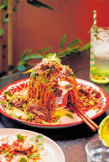 Take the Sa-On noodles, which are twominute style, fried in a sweet soy-based sauce and heaped back into their plastic Insta-pot, the noodles spilling out over the
