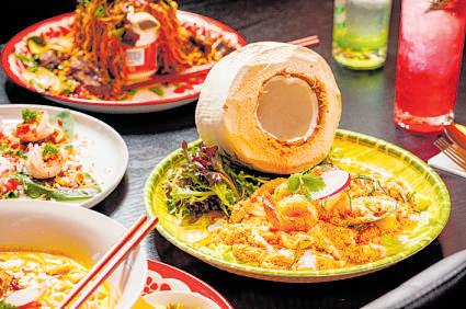 There were only two of us, but I think a table of four to six would be perfect there are so many incredible-looking dishes, and they make it even harder by putting a Five-Star Recommendation next to about a dozen Even if you order perfectly, you will go home feeling like you’ve missed out I went for spring rolls, snack wraps, those noodles, a soup, a curry and rice That in itself was a feast, but missed some key genres grilled meat and salad among them We took half of the food home with us and I concluded that we’d done as well as we could have on your behalf I don’t think you should miss the grilled prawns, served room temperature on a betel leaf with toasted coconut and a little sweet ginger-peanut sauce that makes them incredibly moreish