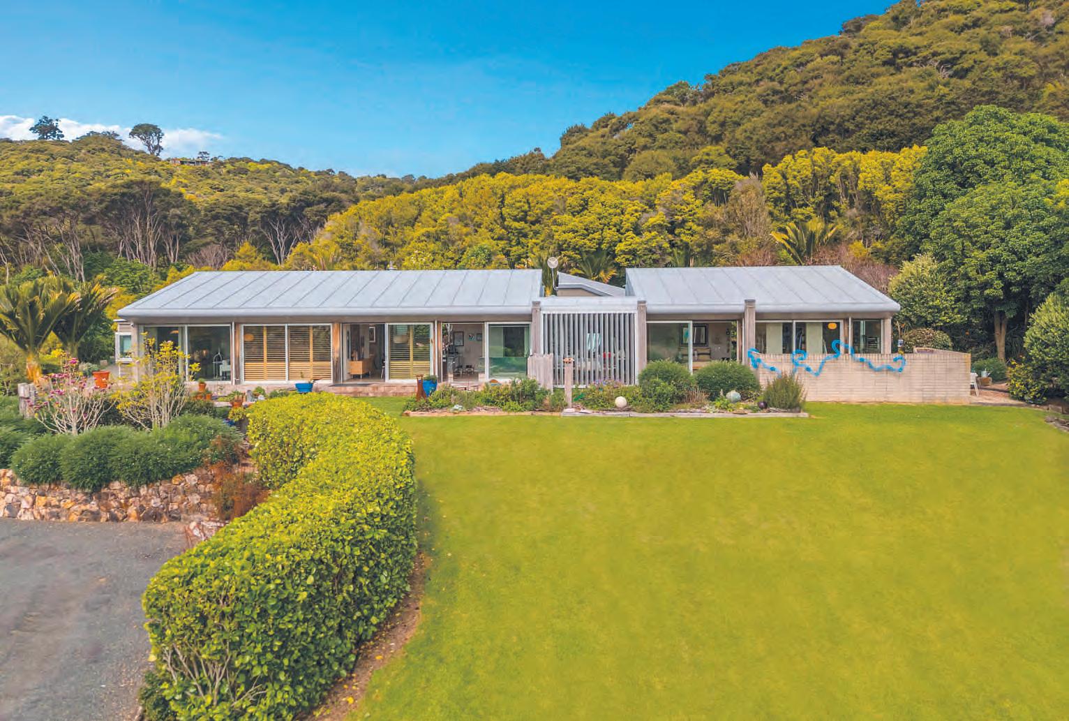 Astunninghomeinaprivatesettingwithbeach/mooringmakes thisaspecialhaven.Theuniquehouse,bymodernistarchitectLen Hoogerbrug,sitsattheendofasweepingdrivewaymaximising PutikiBayviews.Aspaciousinteriorisscrupulouslydetailed,with cedarshuttersonfloortoceilingglass,solidashdoors,Chant hardware,SEVREcolouredglass,ECClighting,passiveheating fromporcelaintilesandinterior/exteriorbrickwallsenhancedby skylightsandPyroclassicwoodburner,zincflashings&garagedoor. TheRobynLabbdesignedkitchen/pantryisabsolutelysuperbin polishedstainlesssteel.Thegardensareasuniqueasthehousedesigned&plantedasamaturewoodlandfullofcolour/character.