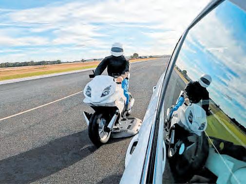 HewasattheDefenceForce’sleadershipcentreatWhangapara¯oawith colleagues,displayingSyosdrones andanuncrewedsix-wheelerwhich fromadistancelookssuitedtobeinga moonbuggy.
