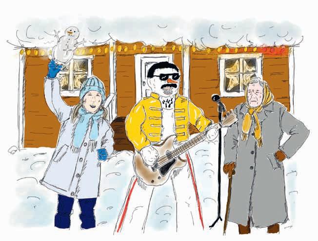 võis majade ees näha kõikvõimalikke vendade Grimmide7 tegelasi, eelmisel aga rokkmuusika legende. Nora ja Erik võitsid oma neljast lumememmest koosneva KISSi8 eest eriauhinna – „Kõige loovam memm“, võitjaks krooniti aga üksmeelselt nende klassiõde Sarah, kes ehitas oma vanema venna abiga Freddie Mercury9. Vend oli isegi nii suuremeelne, et laenas hindamise hetkeks Sarah’ lumest lauljale oma kalli elektrikitarri käte vahele.