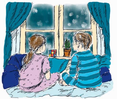 Võite isegi arvata, kui raske oli lastel hommikul ärgata, eriti Noral, kes uinus vaevu enne äratuskella helinat. Sellest hoolimata ilmus tüdruk kööki, lai naeratus näol, sest öösel sadanud lumi polnud kuhugi kadunud, vaid kattis ühtlase glasuurina novembrikuu puudujääke, nagu kokku riisumata inetud pruunid lehed, viimaste õunapunnidega paljad puud ja pori, tonnide viisi pori.