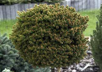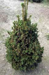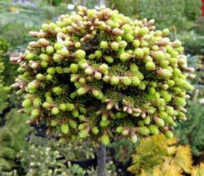 Harilik kuusk 'Hiiumaa'. Tüvele poogitud idakuusk 'Tom Thumb Gold'.