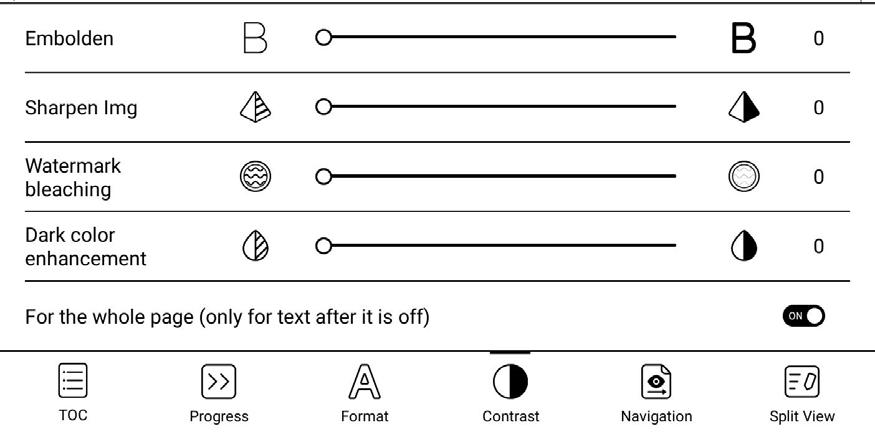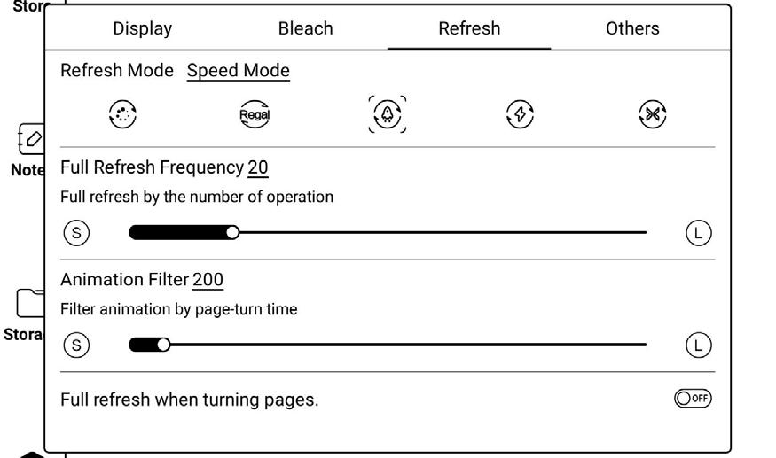 Kiire režiim: Kerge kõrvalkujutiste ja moonutusefekt, mis sobib teksti ja piltidega e-raamatute sirvimiseks.