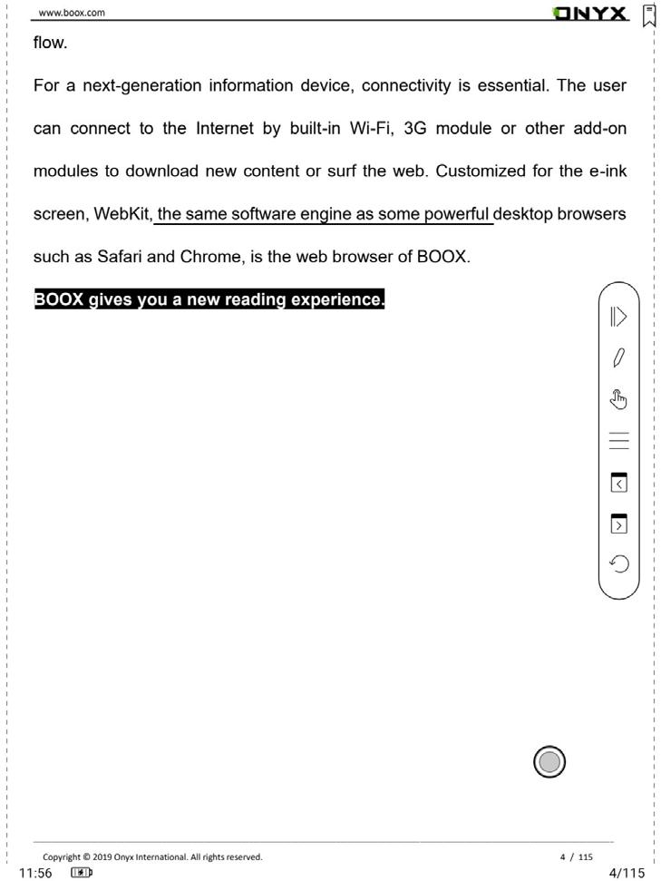 BOOX-i WiFi võrguga. Pärast ühekordset laadimist saab seda hiljem võrguühenduseta lugeda. Sisulehe paigutus on vaikimisi sirvimisrežiim (algse veebilehe paigutus) ning menüüst rohkem saate valida sirvimisrežiimi ja lugemisrežiimi vahel. Lugemisrežiim on ühe lehe režiim, lehe keeramiseks puudutage lehte.