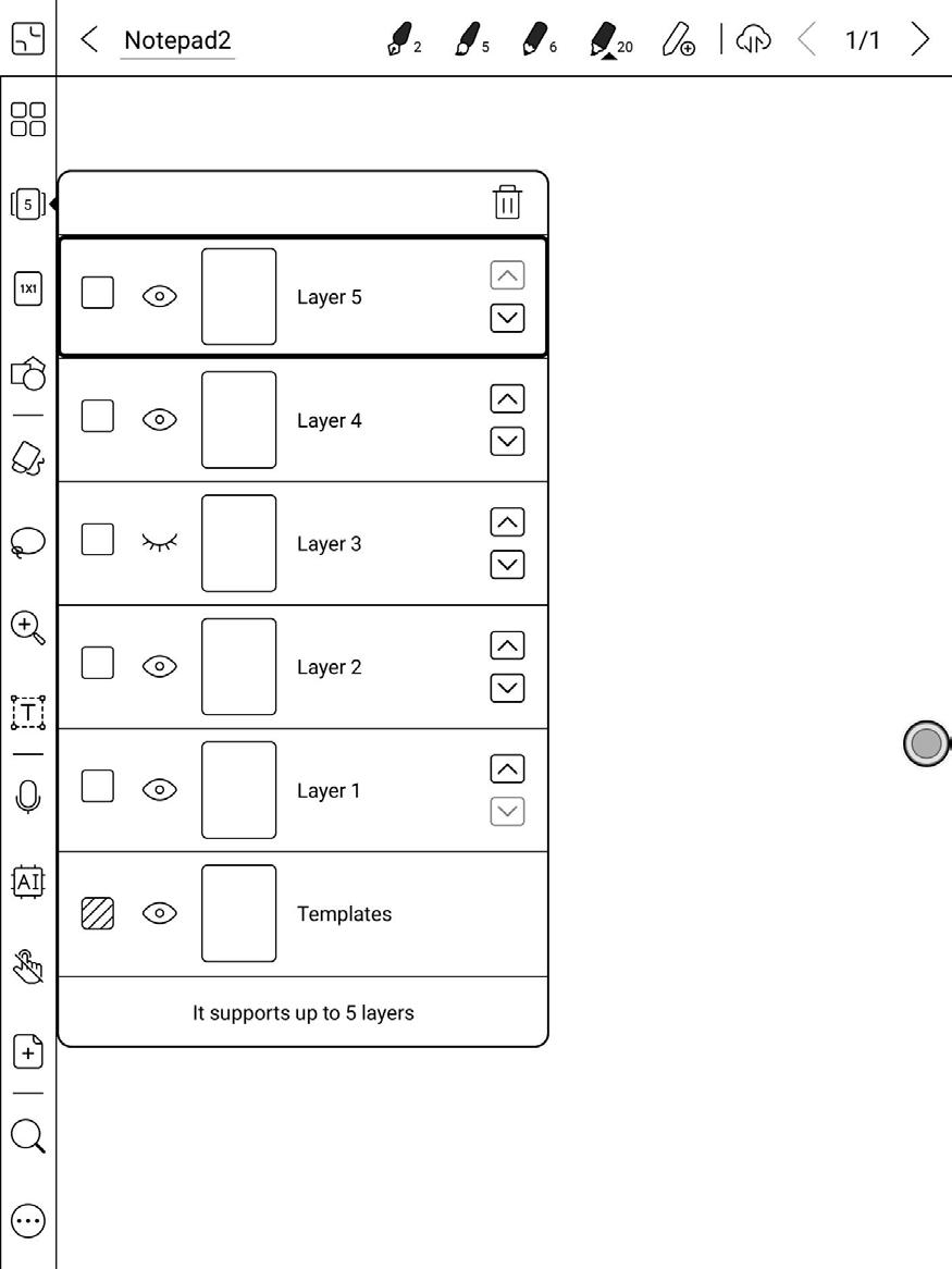 See paneel sisaldab kuupäeva ja kellaaega, Wi-Fi olekut, Bluetoothi, E-tindi keskust (ekraanile toomiseks nipsake ekraanil alt üles), heleduse reguleerimine, helitugevuse reguleerimine. Eespool nimetatud elemendid on püsivad ja neid ei saa eemaldada ega redigeerida.