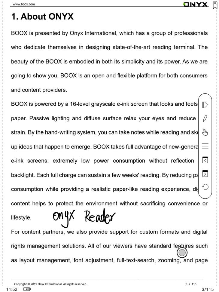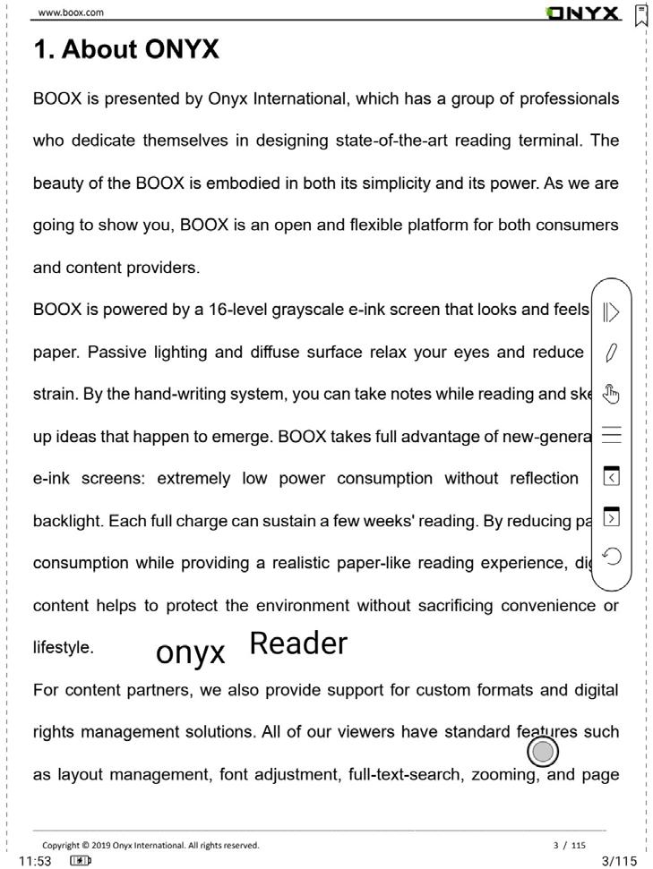 Onyx International Inc. jätab endale õiguse muuta kiirjuhendi ja kasutusjuhendi sisu ilma ette teatamata. Lisateabe saamiseks külastage meie veebisaiti aadressil www.boox.com.