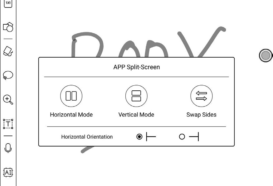 See toetab poolitatud ekraaniga rakendusi. Rakenduse avamisel saate süsteemi rippmenüüst valida poolitatud ekraani ja seejärel valida dokumendi, märkmiku või muu rakenduse, mille soovite ekraani teisel poolel avada.