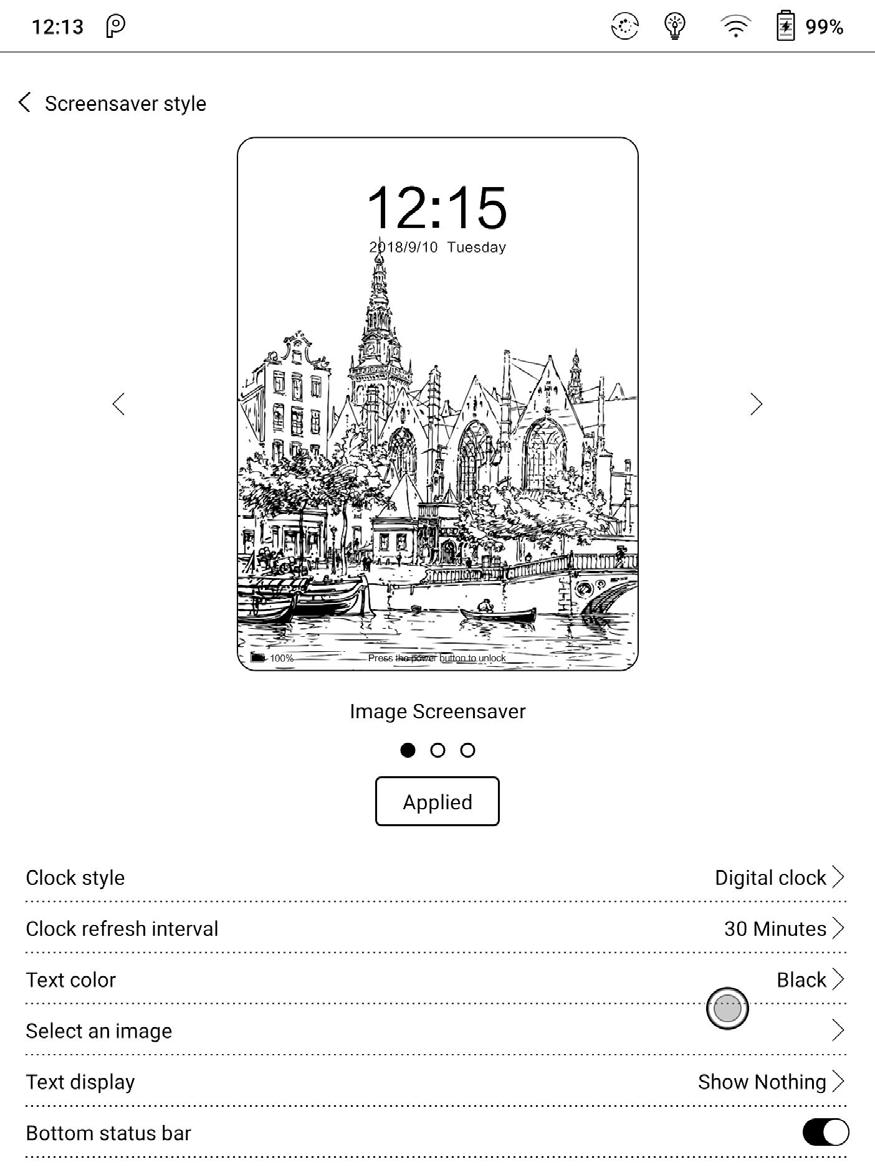 Kella, teksti ja alumise olekuriba saab lisaks läbipaistvale ekraanisäästjale lisada ka teistele ekraanisäästjatele. Kella värskendamise intervallid on kohandatavad. Pärast kella lisamist ekraanisäästjasse säilitatakse ooteolekus ekraanivärskenduse teatud sagedus ja automaatse väljalülitamise ajastust ei toetata.