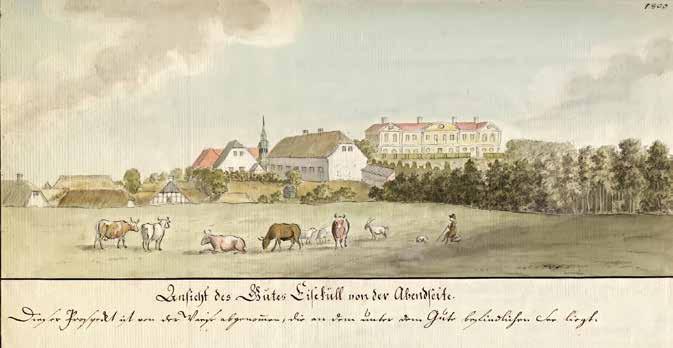 Vaade Õisu mõisale õhtupoolselt küljelt 1800. aastal. Joonistus Johann Christoph Brotze käsikirjalisest teosest Sammlung verschiedener Liefländischer Monumente, Prospecte, Münzen, Wappen etc., VIII, lk 11. LUAB