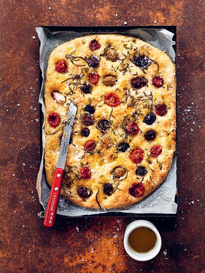 • Kuumuta ahi 200 kraadini, kasutades grillifunktsiooni. Pintselda pitad õliga ja lõika küpsetuspaberiga kaetud ahjuplaadil tükkideks. Aja saiatükid laiali ja rösti ahju keskosas u 5 minutit, valva hoolega, et kõrbema ei läheks. Lase jahtuda.