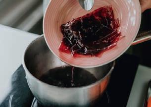 3 Kuumuta mahla, kuni mesi on sulanud. Tõsta pott tulelt ja lisa želatiinilehed, samal ajal hoolikalt segades, et želatiin ühtlaselt lahustuks.