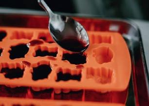 4 Tõsta vedelik supilusikaga meelepärastesse silikoonvormidesse. Pane vormid külmkappi ja lase 30 minutit tarduda.