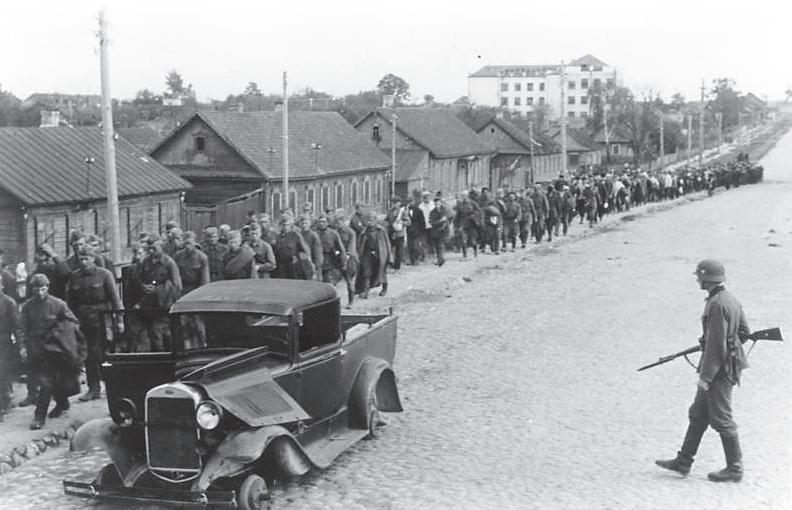 Saksa vägede kätte vangi langenud punaarmeelased 1941. aastal Minskis. Punaarmee koondumine rünnakuks, mitte kaitseks, seletab ka algseid suuri sõjalisi kaotusi.
