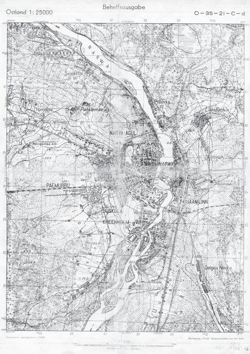Saksa sõjaväekaart Narva linnast koos lähiümbrusega.