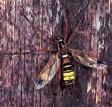 ♂ kamjalt sulgjate tundlatega ning musta või kollakaspruuni sarvekujulise tagakehaga. SU 30–40 mm. LA juuni-juuli. Esinemine Avatud paikades niisketes metsades; mitte sage.