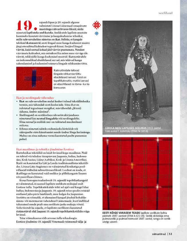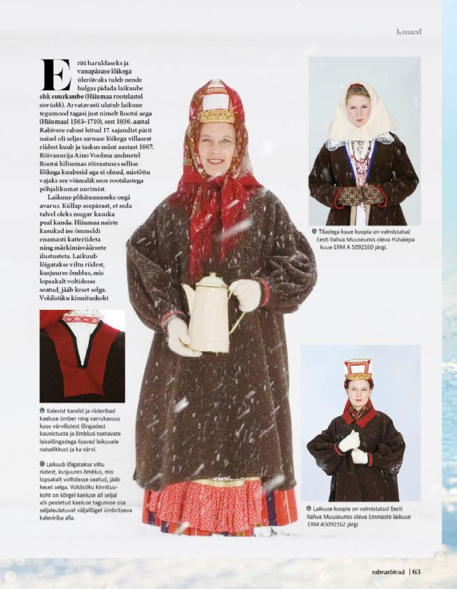 Kõik me oleme elevil alanud laul- ja tantsupeoaastast ja praegu on veel ka hea võimalus enne Laulu- ja Tantsupidu täiendada oma garderoobi isetehtud rõivastega. Ajakirja Käsitöö eriväljaanne RAHVARIIDED pakub huvitavat lugemist, isetegemise õpetusi ja meeldetuletust rahvariiete ning nende kandmisviiside kohta. Kae kapist perra oma rõivastele, kas need vajavad täiendamist, hooldamist või korda seadmist. Enamus lugudest on ilmunud aastate jooksul ajakirjas Käsitöö ning on nüüd pandud kokku suureks eriväljaandeks. Eriväljaanne RAHVARIIDED on riiulis iga rahvarõiva huvilise tarviline vara. Siit leiad rubriikidest, kuidas: • Rahvariideid ise teha; • Neid valida; • Hooldada; • Riietuda pealaest jalatallani rahvariietesse; • milliseid materjale rahvariiete kasutada.