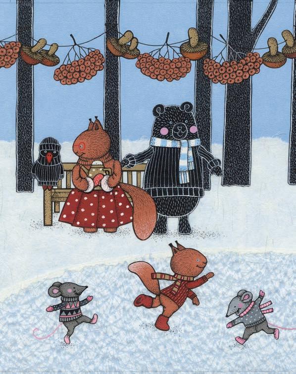 Jääl sagisid ja lasid liugu kümned väikesed metsaasukad. Liuvälja serval mängisid hiir Herberti viis tütart põdrakarvadest tehtud keeltega viiulitel tuliseid mustlasviise. Nad käisid suvel heinaritsika juures muusikakoolis ja mängisid nüüd kõike, mida olid õppinud, vahepeal koguni heliredelit.
